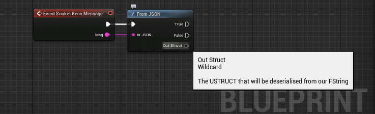 FromJSON is a polymorphic serialisation BlueprintCallable function that takes an FString payload and, if possible, returns the appropriate USTRUCT.